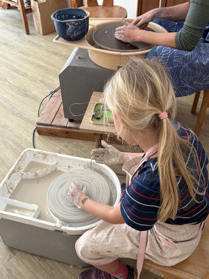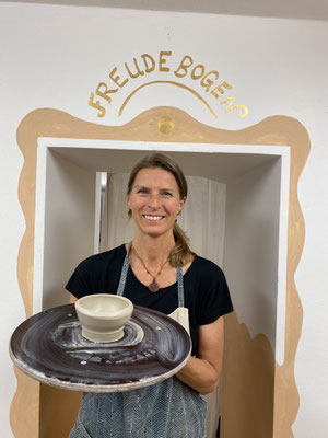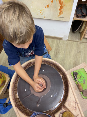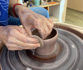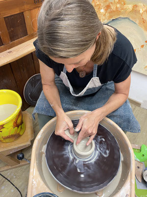 Beim Töpfern ist es essenziell, erst einmal selbst zentriert zu sein. Alles beginnt aus der Ruhe heraus. Ich spüre mich, den Ton und meine Absicht, was ich in meinem Bewusstsein gestalten will. Mit Geduld und Freude machen wir uns ans Werk - dazu zählt auch das lustvolle Scheitern, falls es den Ton wieder aus der Zentrierung schleudert und alles zu eiern beginnt ;-) - umso größer ist dann die Freude, wenn nach und nach ein Werk nach dem anderen gelingt.